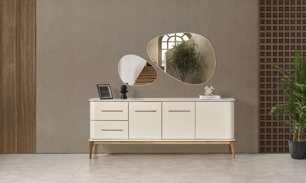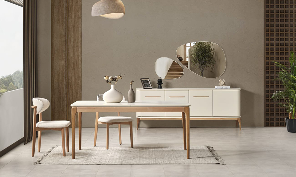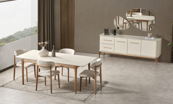 Takım İçeriği 1 adet masa, 6 adet sandalye, 1 adet konsol ve aynasından oluşmaktadır.